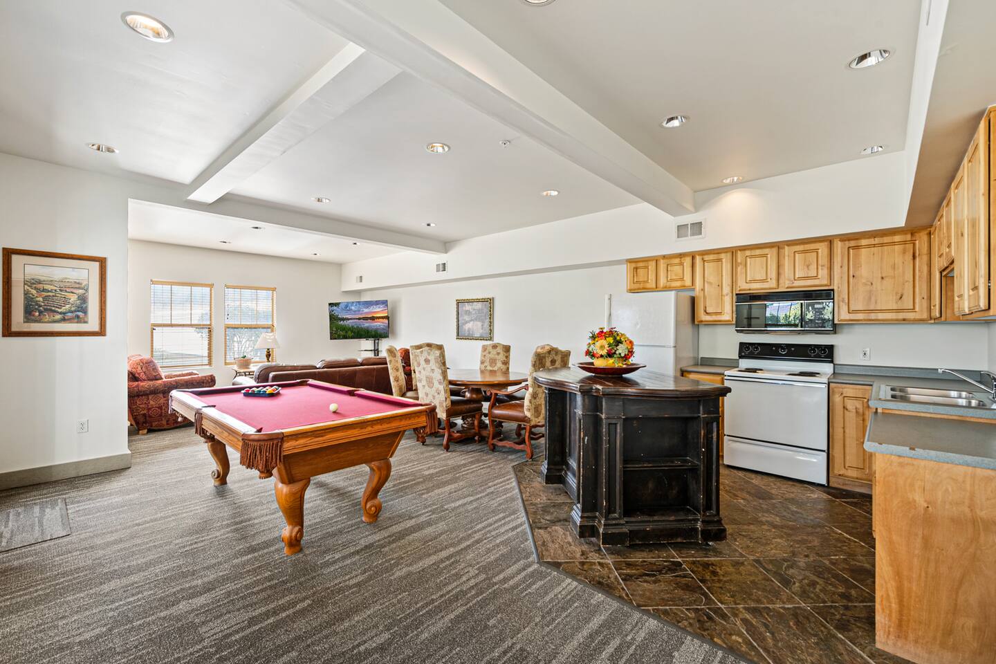 Guests have full access to the entire condo and all the amenities within the complex including the swimming pool, hot tub, fitness center, pickleball and basketball court, playground, and clubhouse. Note: The hot tub is open year round while the swimming pool is open Memorial Day through Labor Day. The condo is on the second level so guests must use stairs to access the property. There is a condo above, so guests may hear movement now and again. The trash bins are located outside throughout the complex. There are 2 parking spaces allocated to the condo in a heated, covered garage. There is additional outdoor parking throughout the complex. Please note that this is a shared garage. The garage has 2 assigned parking spots and a clearance of 7.5 feet in height. If you need additional parking (or have a larger vehicle), there are outdoor parking areas throughout the complex. Trailers, boats, and RV's are not allowed in the complex. Please message me so we can arrange parking at Jordanelle or elsewhere. We offer early check-in and late check-out for $25/hr. Please schedule in advance.