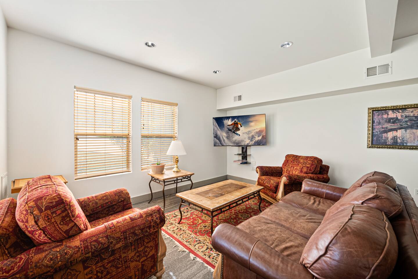 Please note that this is a shared garage. The garage has 2 assigned parking spots and a clearance of 7.5 feet in height. If you need additional parking (or have a larger vehicle), there are outdoor parking areas throughout the complex. Trailers, boats, and RV's are not allowed in the complex. Please message me so we can arrange parking at Jordanelle or elsewhere. Pets are welcome with an additional fee of $15 per dog per night. In order to provide an excellent experience for all of our guests we allow responsible dog owners to bring WELL BEHAVED dogs (up to 2) during their stay. A deep cleaning is performed after each stay. Please crate your pet if you are leaving them alone in the property to avoid damages. Pets must be on a leash at all times while outside. Reliable High-Speed Wi-Fi The internet has been fully upgraded and is now fast and stable throughout the home. While there were a few connectivity issues in the past, those have been resolved, and guests can now enjoy smooth streaming, remote work, and video calls.