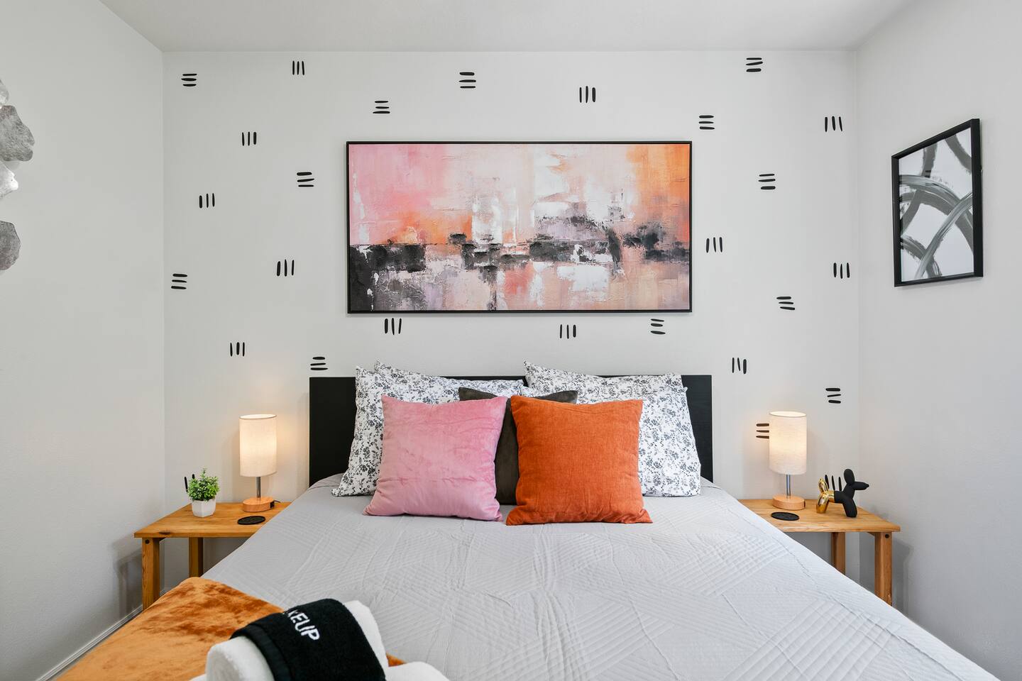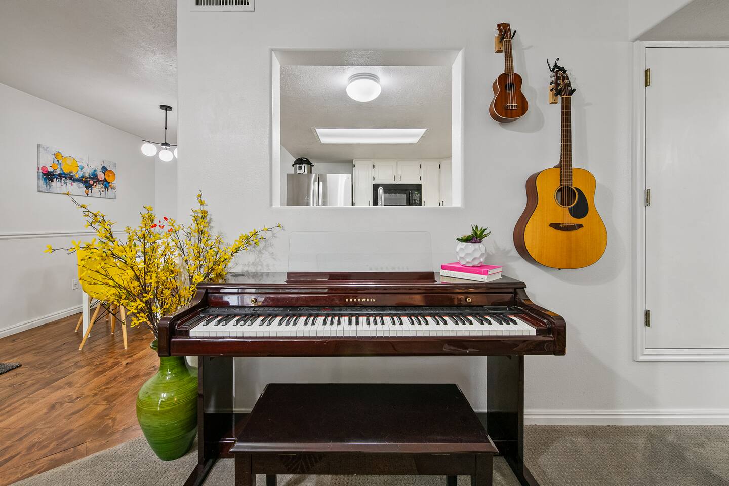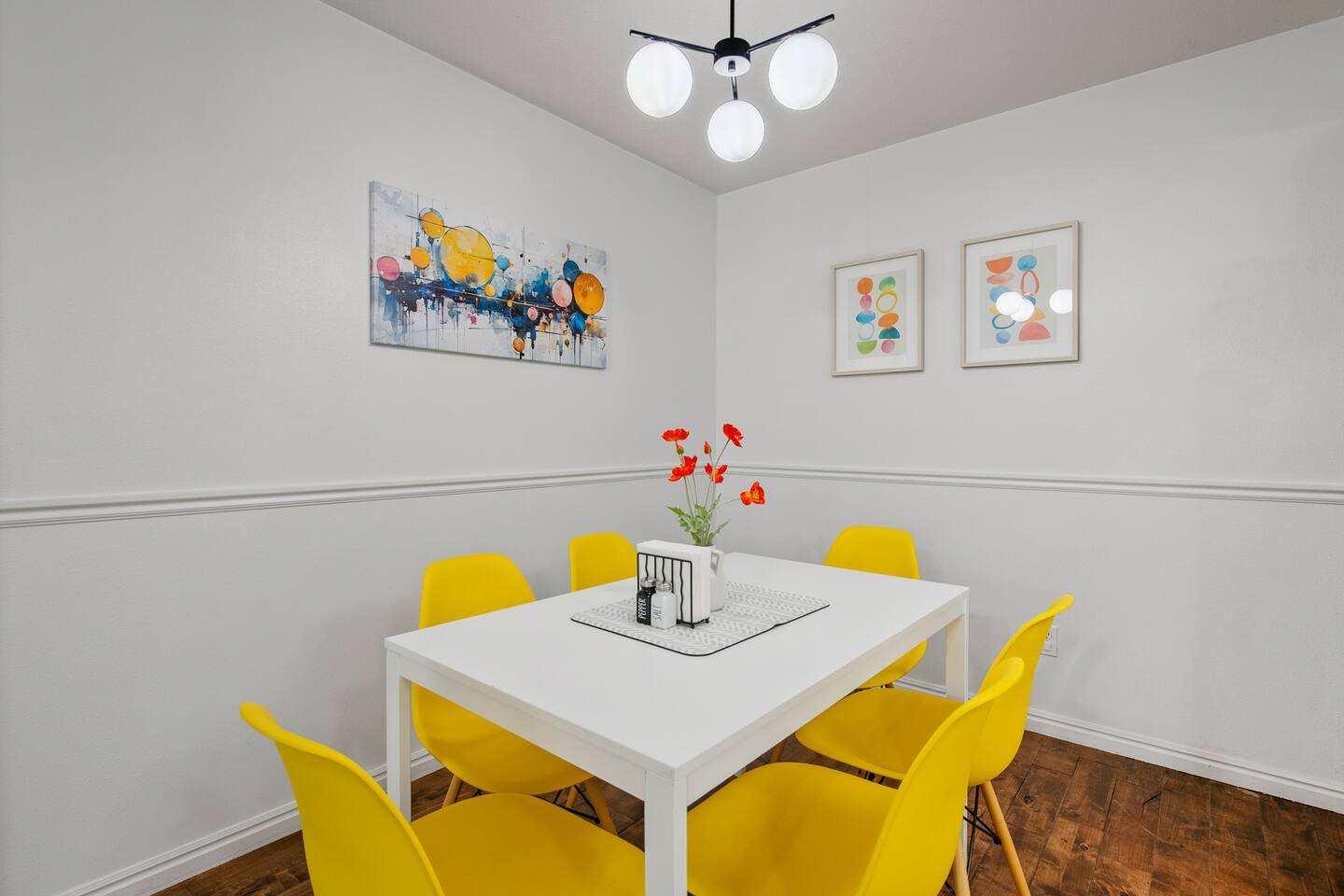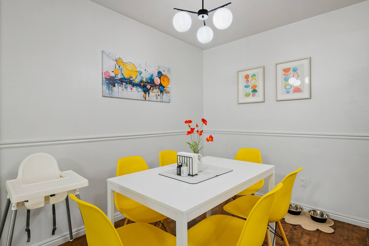 ✨ Bright, Cheerful, & Cozy ✨ Step inside this welcoming condo designed for travelers who want comfort, style, and convenience. The open layout is perfect for relaxing or entertaining — featuring a bright living room with plush seating, Smart TV, board games, and even a few instruments for impromptu jam sessions. Enjoy a morning coffee or evening glass of wine on the private patio with mountain views. 🍳 Fully Stocked Kitchen & Dining Cook like you’re at home in the thoughtfully equipped kitchen: ☀ Stove, oven & microwave ☀ Coffee station with fresh coffee beans, creamers, flavorings, teas, & grinder ☀ Pots, pans, bakeware, & spices ☀ Toaster, blender, & wine glasses ☀ Dishwasher & cleaning supplies ☀ Dining table with seating for 6 🛏 Comfortable & Flexible Sleeping Spaces Bedroom 1: King bed with plush bedding, spacious walk-in closet, bedside lamps, and a peaceful vibe — a true retreat after a day of exploring. Bedroom 2: Queen bed with premium linens, dresser, closet space, Smart TV, and blackout curtains for a restful night. Living Room: Brand-new queen pull-out sofa bed with extra linens — perfect for kids or extra guests. 🌟 Amenities You’ll Love ☀ Private outdoor patio with seating ☀ Free high-speed WiFi & Smart TVs ☀ Record player + records, guitar, piano, & games ☀ Washer/dryer with laundry essentials ☀ Central heating & air ☀ Fresh towels, linens & toiletries ☀ Work-friendly desk space ☀ Plenty of free parking ☀ Keyless self check-in 📍 Perfect Orem Location ☀ 5 mins to UVU, 10 mins to BYU ☀ Quick access to I-15 for Provo, Lehi & SLC ☀ Close to University Place, Provo Towne Centre, dining & entertainment ☀ Minutes from Provo Canyon, Bridal Veil Falls & Utah Lake ☀ 30 mins to Sundance Resort & skiing 🐾 Pet Friendly Furry friends are welcome with an additional fee of $15 per pet per night. In order to provide an excellent experience for all of our guests we allow responsible dog owners to bring WELL BEHAVED dogs (up to 2) during their stay. A deep cleaning is performed after each stay. Please crate your pet if you are leaving them alone in the property to avoid damages. Pets must be on a leash at all times while outside at the property. PLEASE NOTE: While you'll be staying in your own private condo, the building is shared with other residents-including neighbors below, above and on one side of you. You may occasionally hear everyday sounds like footsteps in the hallway or a dog barking nearby. We kindly ask that you be mindful of noise and considerate of those around you—just as we hope they’ll be for you! Book your stay today and enjoy a cozy, comfortable, convenient location, and all the thoughtful extras that make your trip unforgettable!