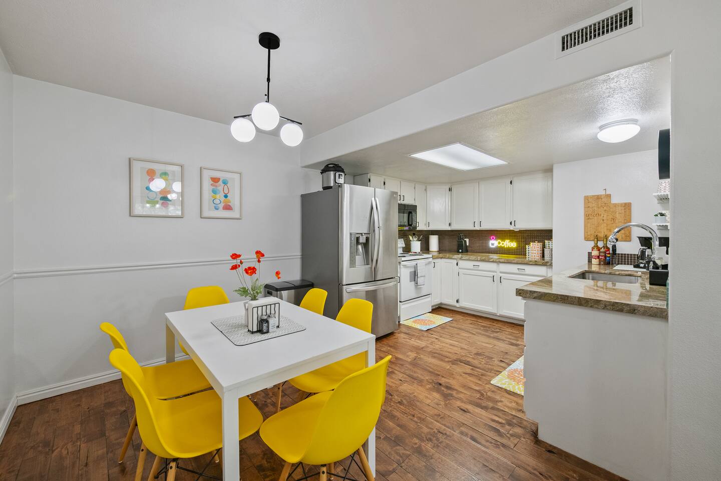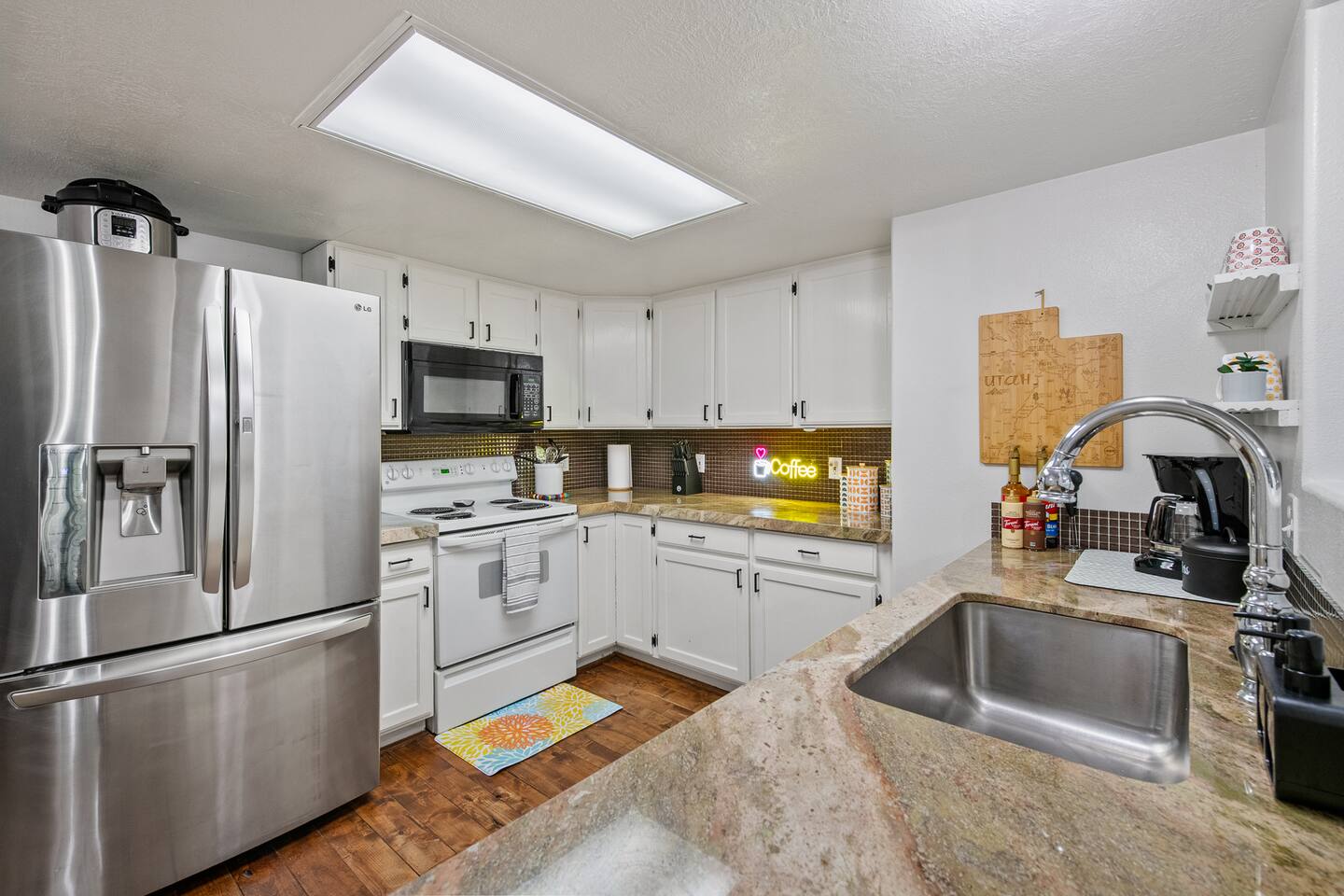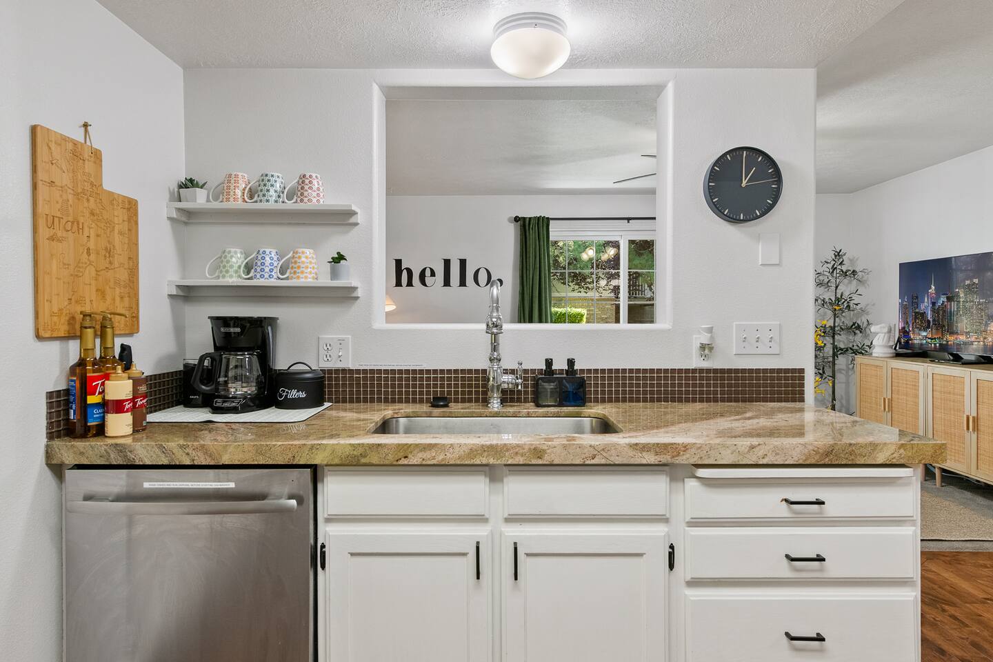 This adorable condo is perfectly located with quick freeway access for whatever adventure you have planned & filled to the brim with amenities! Enjoy the stocked kitchen & coffee bar, fun family games, record player, open dining area, cozy living room, 2 ultra comfy bedrooms + queen-size sleeper sofa, private balcony, & free parking. Just minutes to UVU & BYU, Provo Canyon, Sundance, & downtown Orem/Provo. This pet friendly condo is perfect for families, students, and business travelers alike!