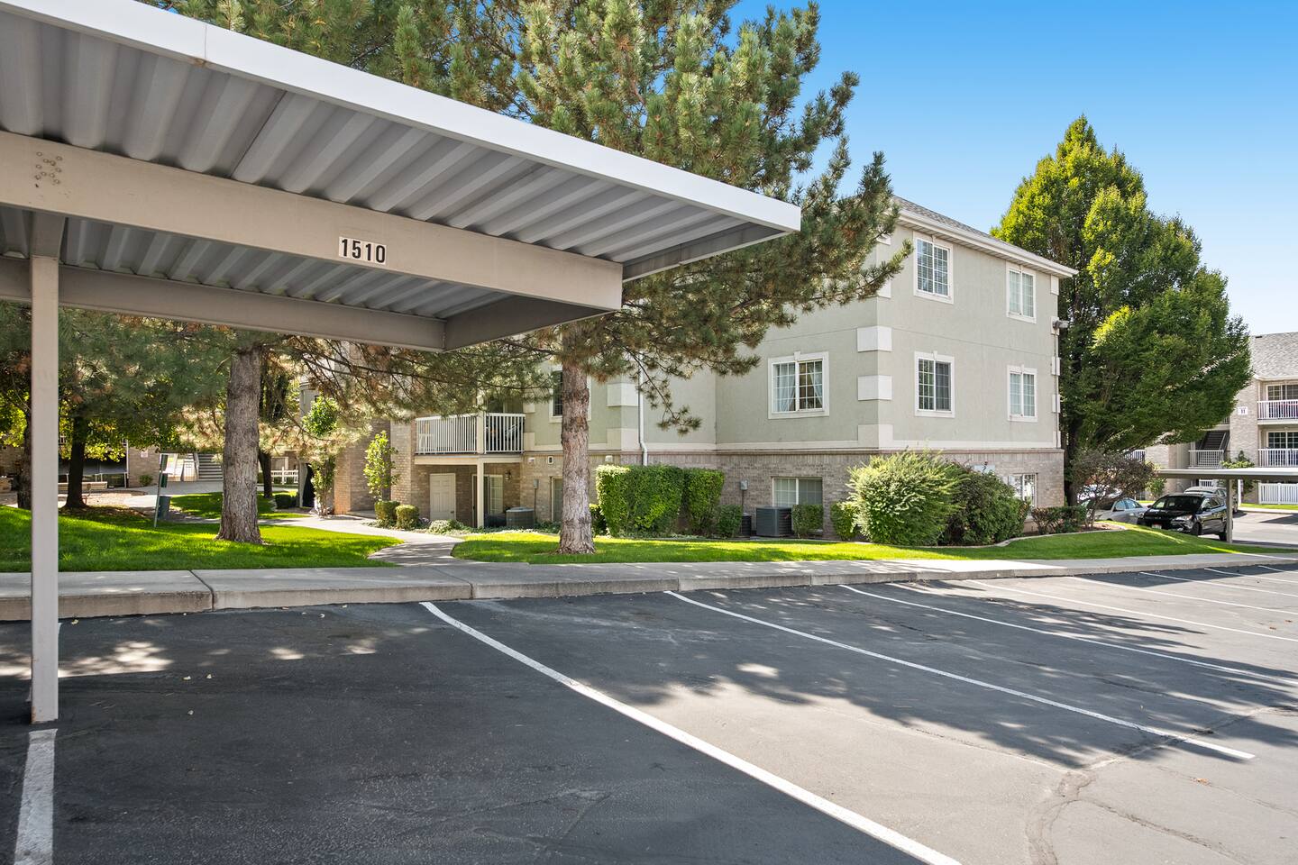 There is one designated covered parking spot as well as a plentitude of open parking in the lot. Parking available in any uncovered spot. There is one flight of stairs to access the unit.