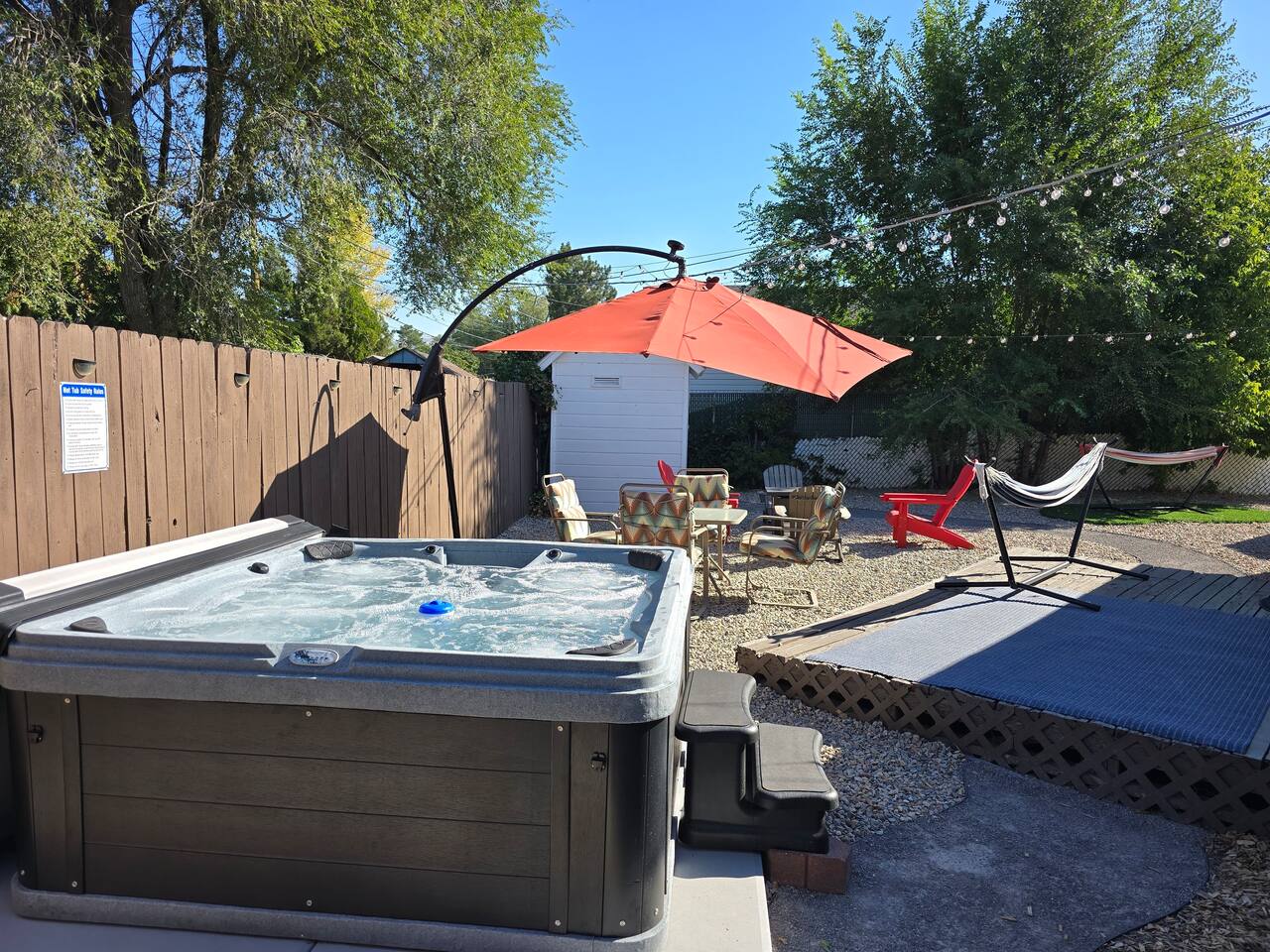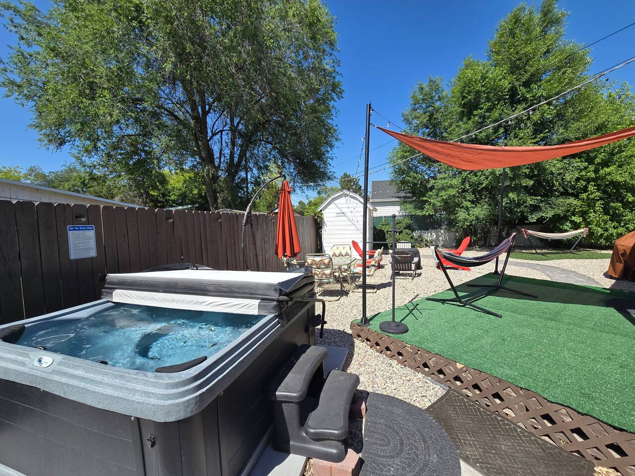 Adventure, Explore, then Relax in the Hot Tub! This charming and fully stocked home offers everything you need for a comfortable and memorable stay in Salt Lake City. Whether you're here for work, play, or relaxation, you’ll love the thoughtfully designed spaces, modern amenities, and prime location near downtown, the airport, and top ski resorts. Inside the Home Living Room - Spacious and inviting with a large, comfy couch - Cozy fireplace to warm up after a day of exploring - Board games and Books - Record player with a vinyl collection for a nostalgic vibe - Smart TV for movie nights or catching up on your favorite shows Fully Equipped Kitchen - Stocked with everything you need to cook delicious meals - Coffee bar with all the fixings for the perfect morning brew - Modern appliances, cookware, and plenty of dishware - Dining area perfect for gathering with friends & family Laundry Room - Full-size washer & dryer available for guest use - Stocked with detergent, dryer sheets, and other essentials Bedrooms & Sleeping Arrangements Master Bedroom - Lush king-size bed with ultra-comfortable bedding - Smart TV - Blackout curtains - Phone chargers and sound machine - Walk-in closet with ample storage. The Pack n Play with Sheets, bouncer, and baby bath are located in this closet - Dedicated workspace for remote work or planning your adventures Second Bedroom - Cozy queen-size bed with plush linens - Blackout curtains for a restful sleep - Dedicated workspace for work-from-home guests - Phone chargers and sound machine - Dresser - Closet for storage Third Bedroom - Queen-size bed with high-quality bedding - Blackout curtains for peaceful mornings - Closet for storage and organization - Dresser - Phone chargers and sound machine Outdoor Oasis – Relax & Enjoy! Step outside and enjoy the huge fenced backyard, the perfect spot to unwind and make lasting memories. - Hot Tub – soak under the stars after a day of adventure - Patio area with comfortable seating - Grill for outdoor BBQs - Outdoor games and Bistro lights - Fire pit to gather around for drinks and storytelling - Hammock (available during warm weather months) for the ultimate relaxation Amazing Location! - 1 mile (3 minutes) to nearest EV Charging Station - 3 miles (7 minutes) to downtown Salt Lake City – restaurants, bars, shopping, and entertainment - 6 miles (11 minutes) to the Salt Lake International Airport – easy travel access - 20 miles (30-45 minutes) to Park City, Snowbird & Brighton Ski Resorts – world-class skiing and outdoor fun Fun Fact – A Slice of Movie History! This home is just a 5-minute walk from the iconic baseball field featured in *The Sandlot*! Grab a bite at Hook & Ladder, the same burger joint from the film, and relive a piece of movie history. PETS: We love hosting WELL BEHAVED pets! In order to keep our home clean and meticulously cared for, we charge a pet fee of $15 per pet per night. The backyard is fenced in but small dogs may be able to squeeze under the fence. We provide food dishes, poop bags, and doggie beds. Please crate your pet if you must leave them alone to avoid damages to the house!