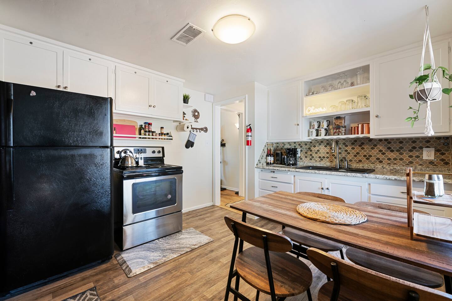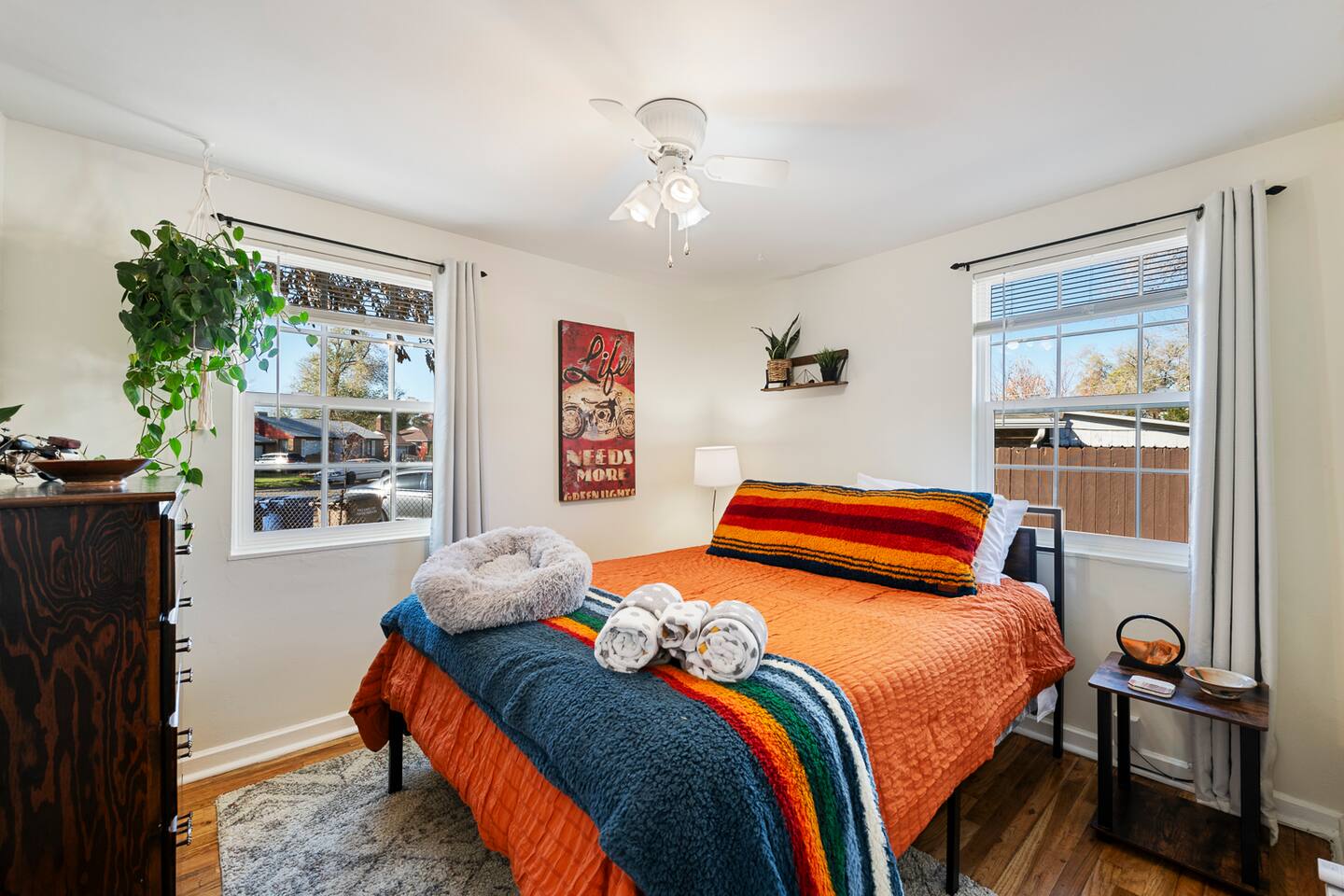 PETS: We love hosting WELL BEHAVED pets! In order to keep our home clean and meticulously cared for, we charge a pet fee of $15 per pet per night. The backyard is fenced in but small dogs may be able to squeeze under the fence. We provide food dishes, poop bags, and doggie beds. Please crate your pet if you must leave them alone to avoid damages to the house! FRAGRANCE SENSITIVITIES: We strive to keep our home fresh and inviting using natural cleaners like Mrs. Meyer's and vinegar as well as fragrance- and dye-free laundry detergent for those with sensitivities. However, we also use plug-in air fresheners and provide bathroom spray and dryer sheets for guests who enjoy scents. If you prefer a scent-free environment, please request plug-in removal before your stay, and we’ll ensure your space is prepared accordingly during cleaning! SECURITY CAMERAS: Please note, we do have exterior security cameras for the safety of our guests and because care for our property deeply.